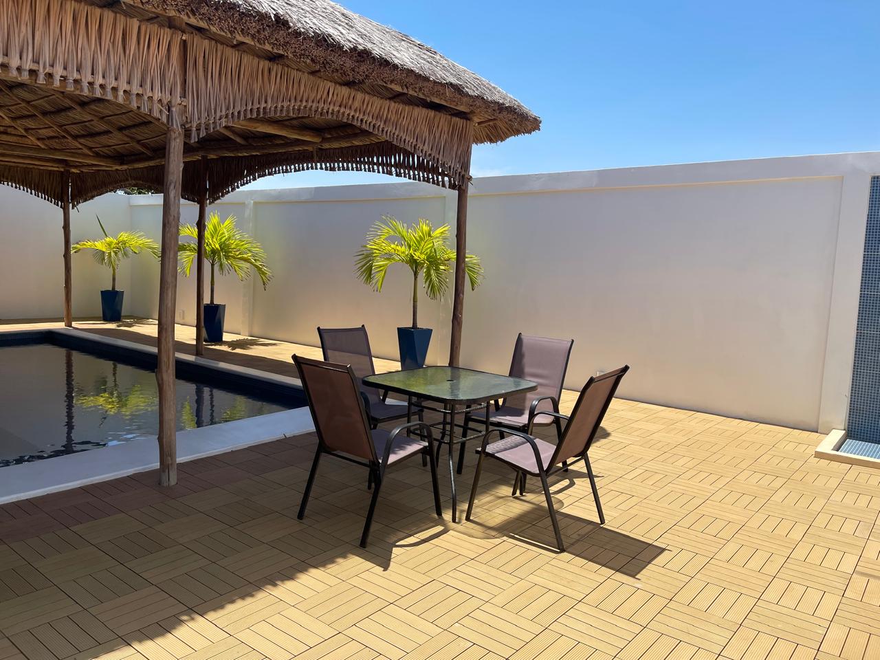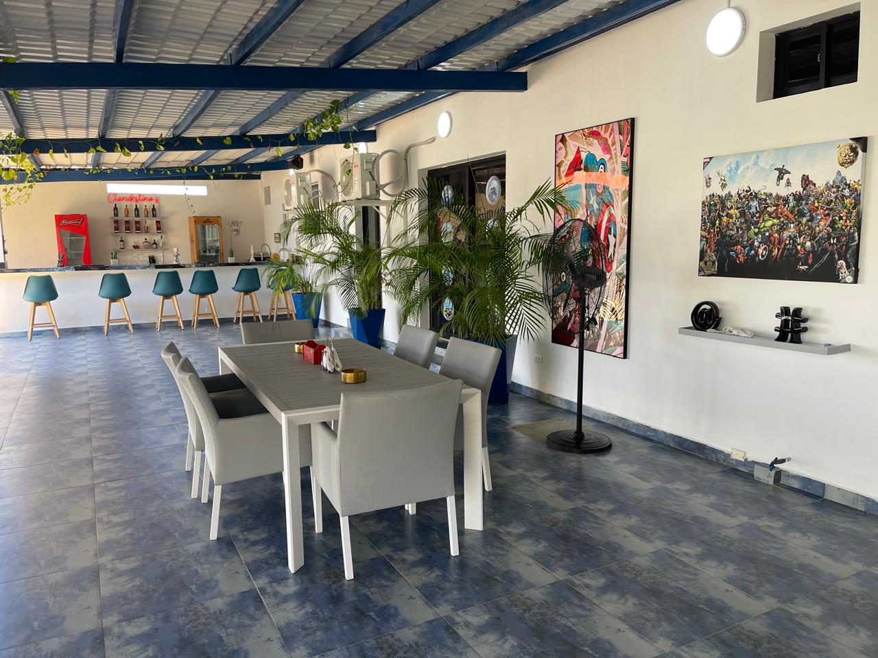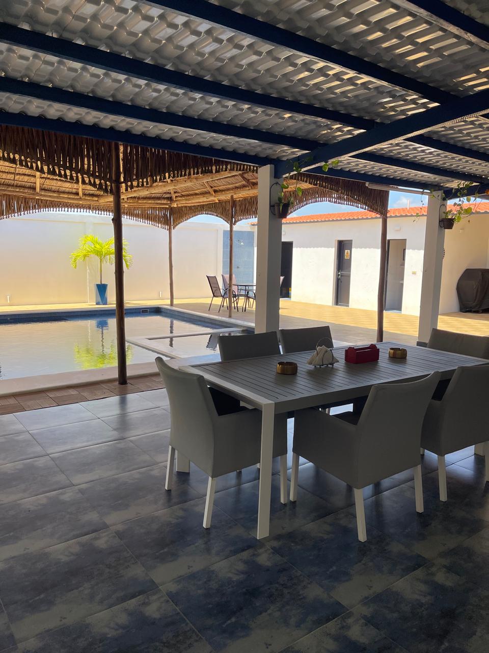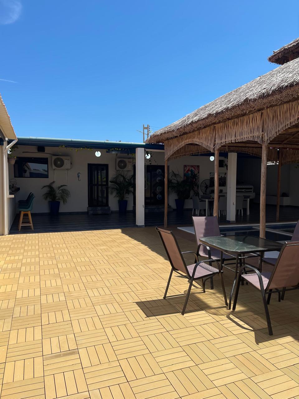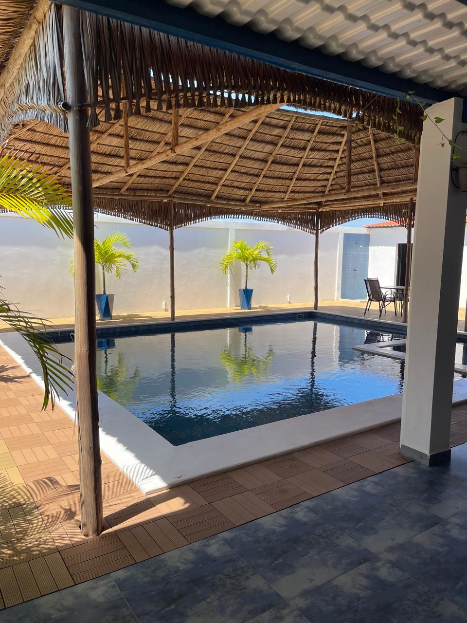 La casa cuenta con una piscina privada (9m × 6m), donde se puede disfrutar con música alegre debajo del bohío que cubre la piscina. Tiene 2 habitaciones, cada una equipada con aire acondicionado y baño privado con ducha y WC. Además, dispone de una terraza extragrande y un bohío para relajarse.