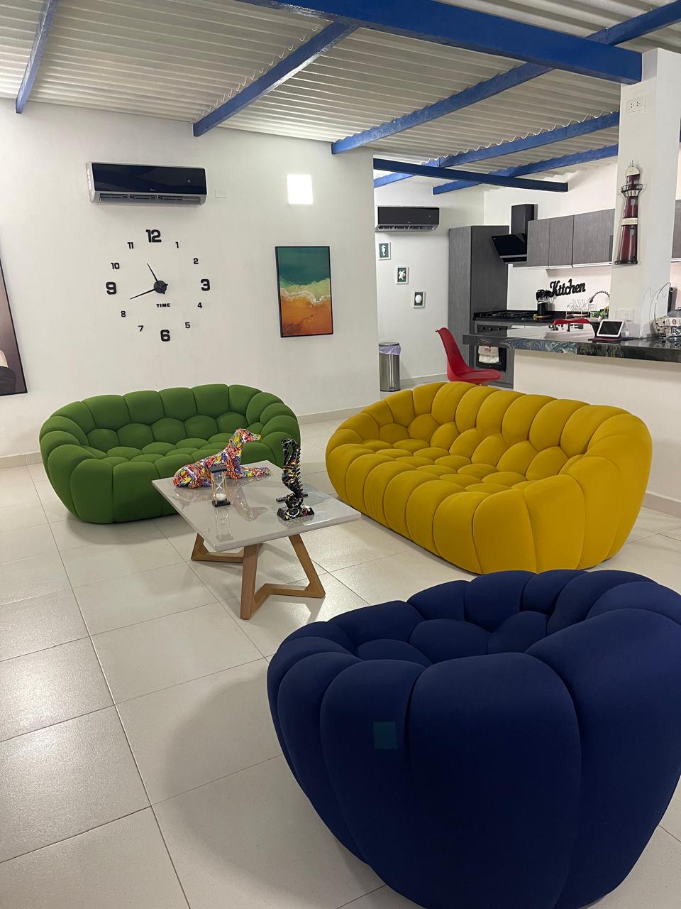 Una vez que entras en Casa Tatooko’s, inmediatamente se sentirá como en casa gracias a la amplia sala de estar, la cocina abierta totalmente equipada y el bar con una gran terraza. El mobiliario se adapta a la atmósfera de la casa.